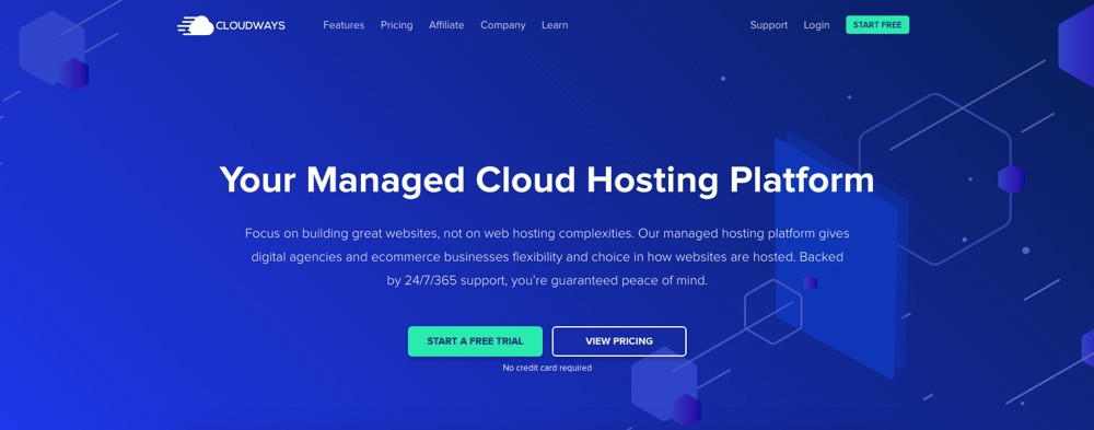 For cloud hosting, you can’t do better than Cloudways. This managed cloud hosting company offers many cloud options such as DigitalOcean, Linode, Vultr, AWS and Google Cloud. Once you pick the one that suits your needs you can add free SSL, unlimited number of applications/installs, automated backups, advanced caching, firewalls and more.