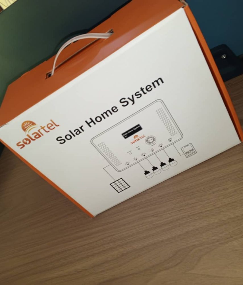 The solar home system is ideal for household use. It has 3 light bulbs, a power bank (can charge phones) and a solar panel. The cables for light bulbs and solar panel are 5 m long.