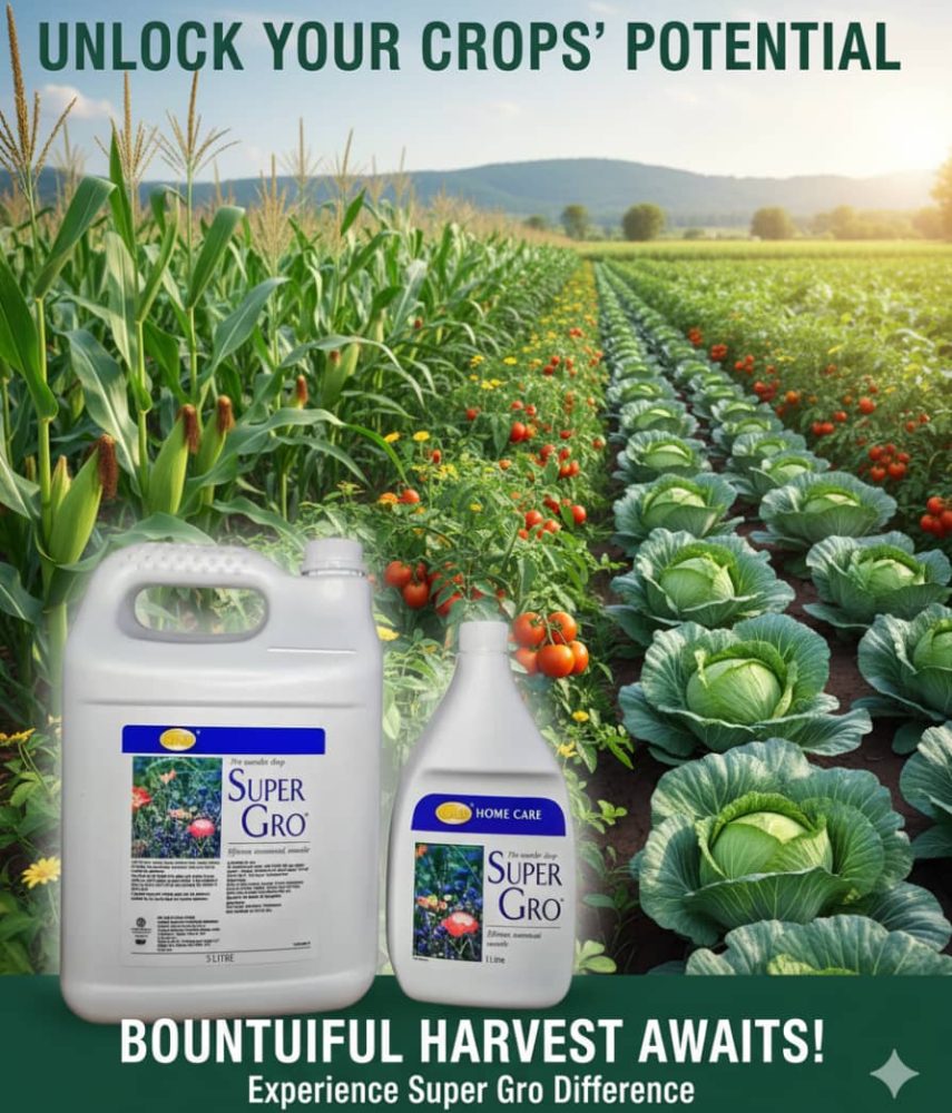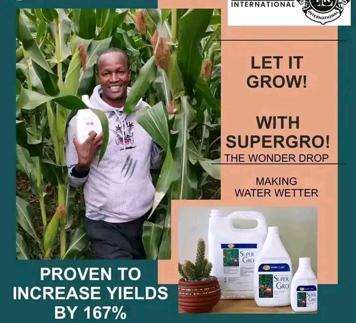 Advantages of using Supergro in farming: ▪️Increases yields by over 167%; ▪️ Makes water 'wetter', therefore, assisting more water to reach the roots of the plant optimising plant growth; ▪️Improves absorption of nutrients; ▪️Breaks the surface surface tension of water; ▪️Increases the rate at which water enters the soil; ▪️ Biodegradable, non- toxic, non flammable and environmental friendly; ▪️ Doesn't affect the PH of the soil; ▪️It feeds, renews and revitalizes the plant.☎️☎️+260977812084👈👈 location Lusaka